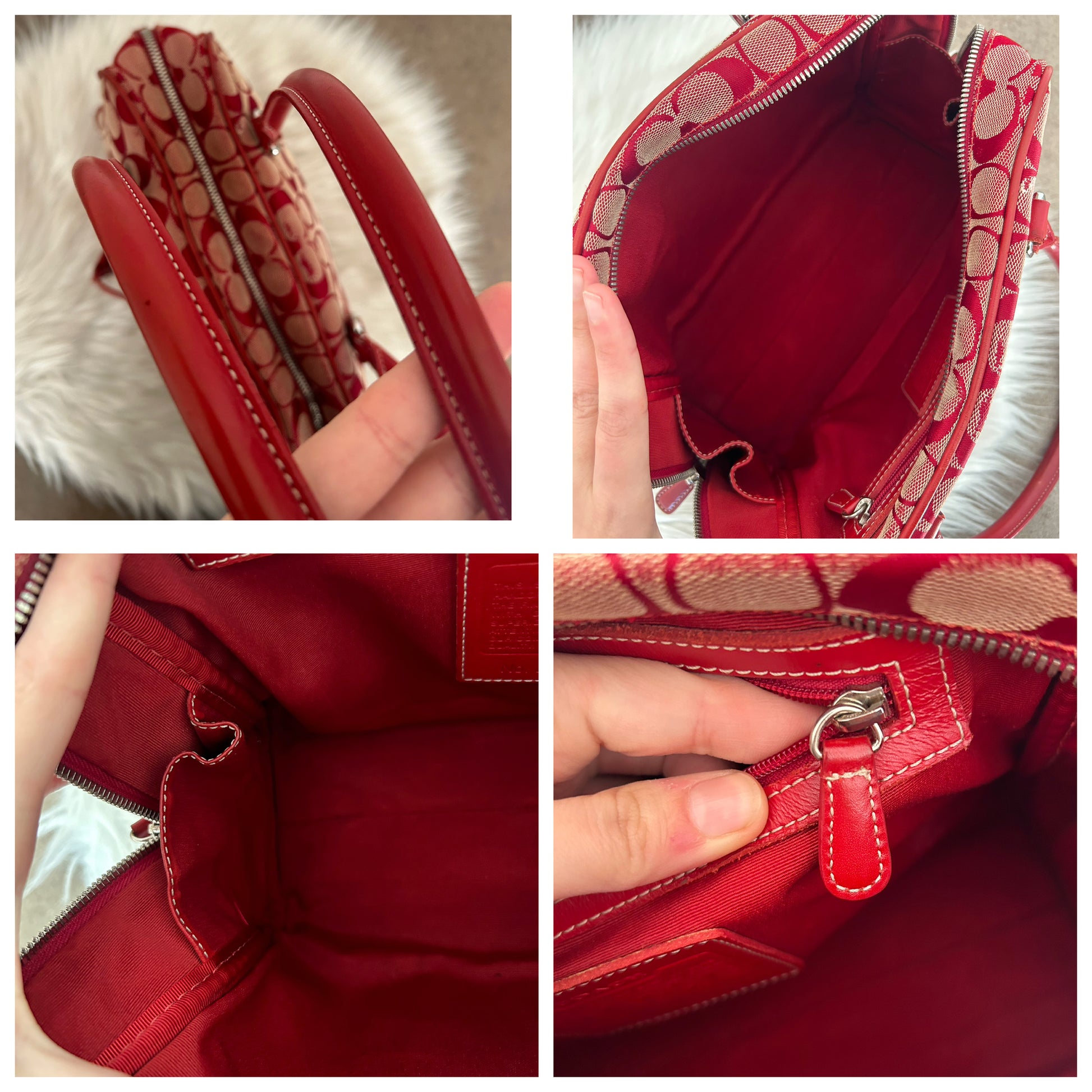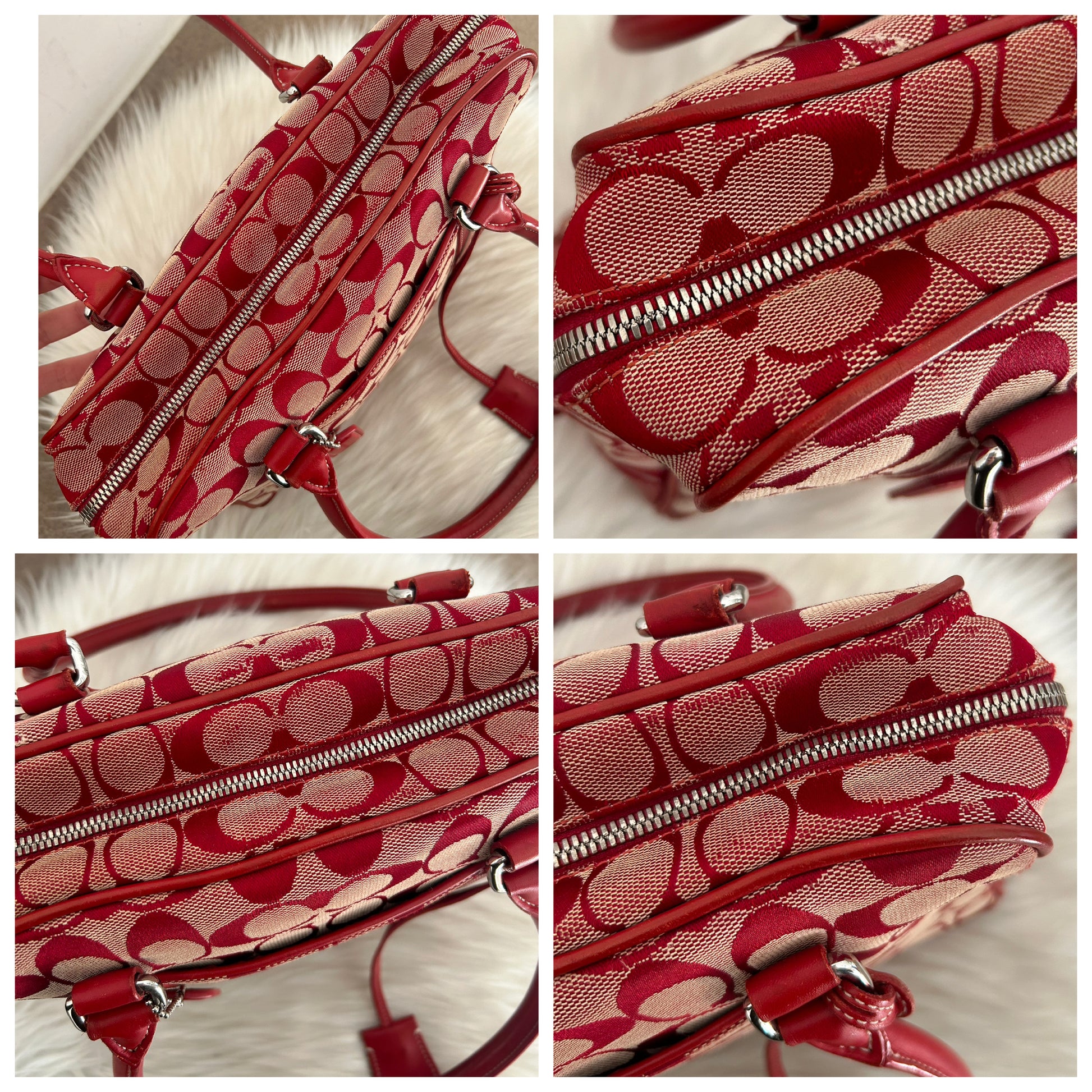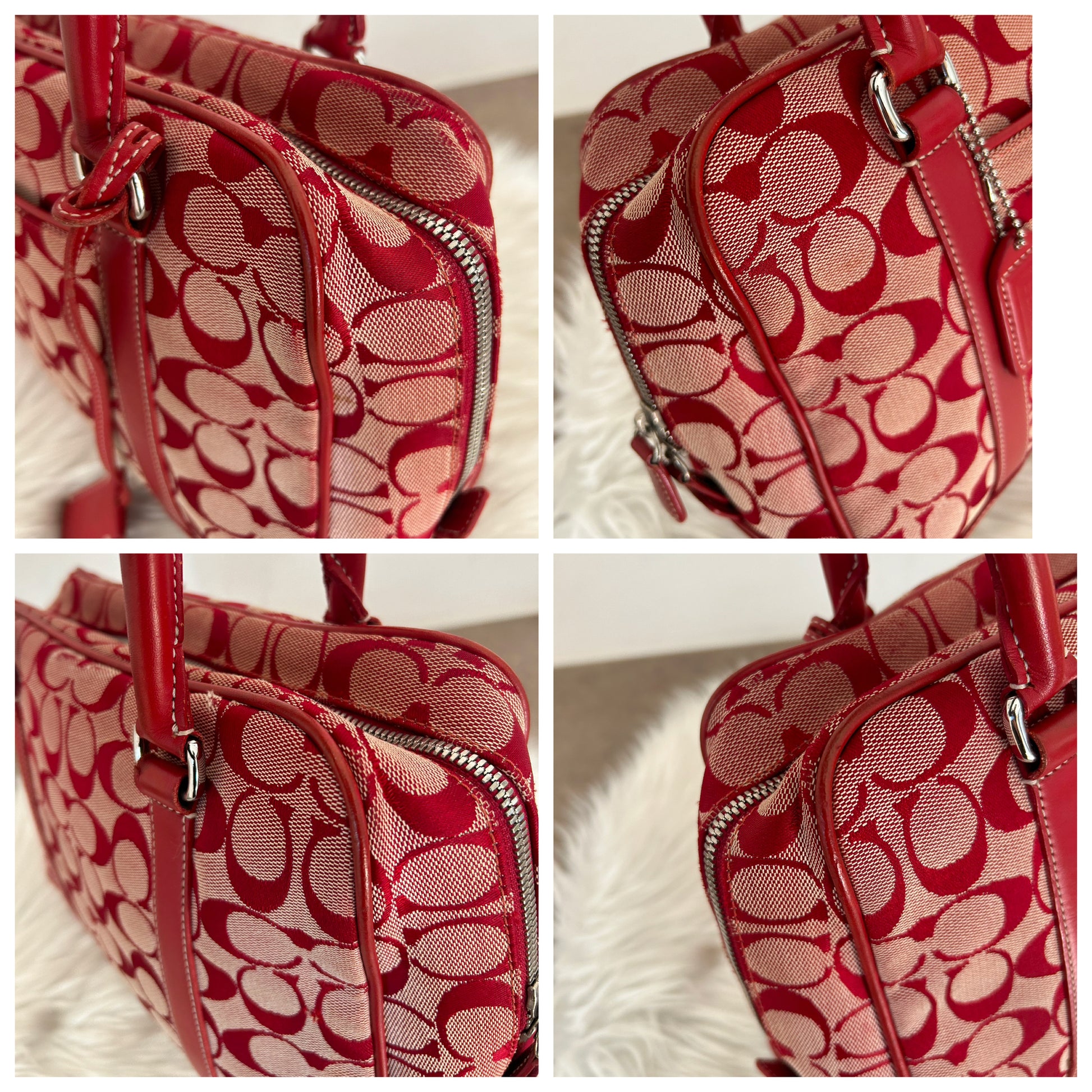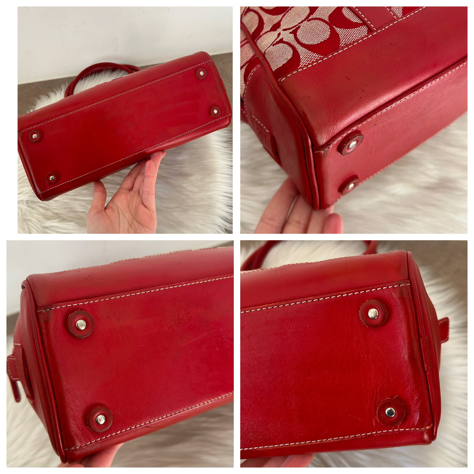 Bauletto Coach vintage in monogram rosso. La borsa si presenta esattamente nelle condizioni mostrate in foto, si prega di guardarle attentamente poiché eventuali difetti o imperfezioni, se presenti, sono sempre mostrati. Il prezzo tiene sempre conto delle condizioni della borsa. Ogni articolo viene sempre igienizzato prima di essere spedito. Segnalo che il colore degli angoli è stato fatto restaurare da un esperto del settore.