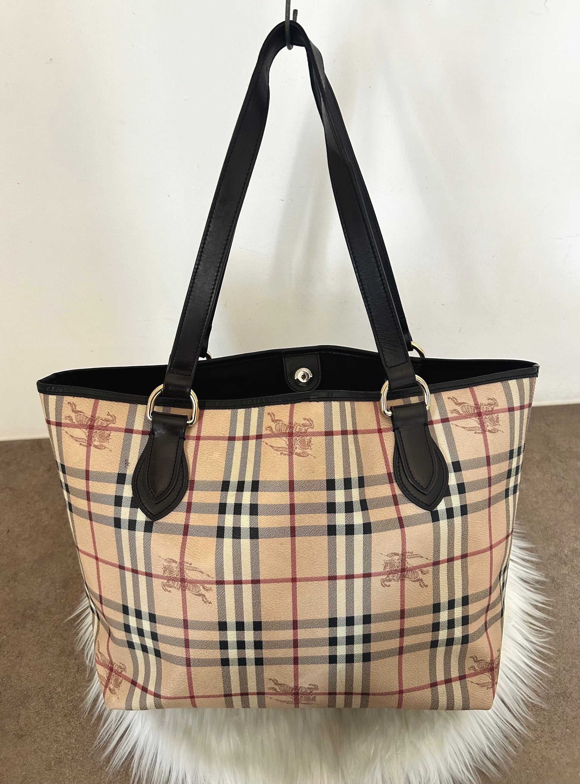 Borsa Burberry in tessuto Check. Si tratta di una tote bag estremamente spaziosa. La borsa si presenta esattamente nelle condizioni mostrate in foto, si prega di guardarle attentamente poiché eventuali difetti o imperfezioni sono sempre mostrati. Il prezzo tiene sempre conto delle condizioni della borsa.