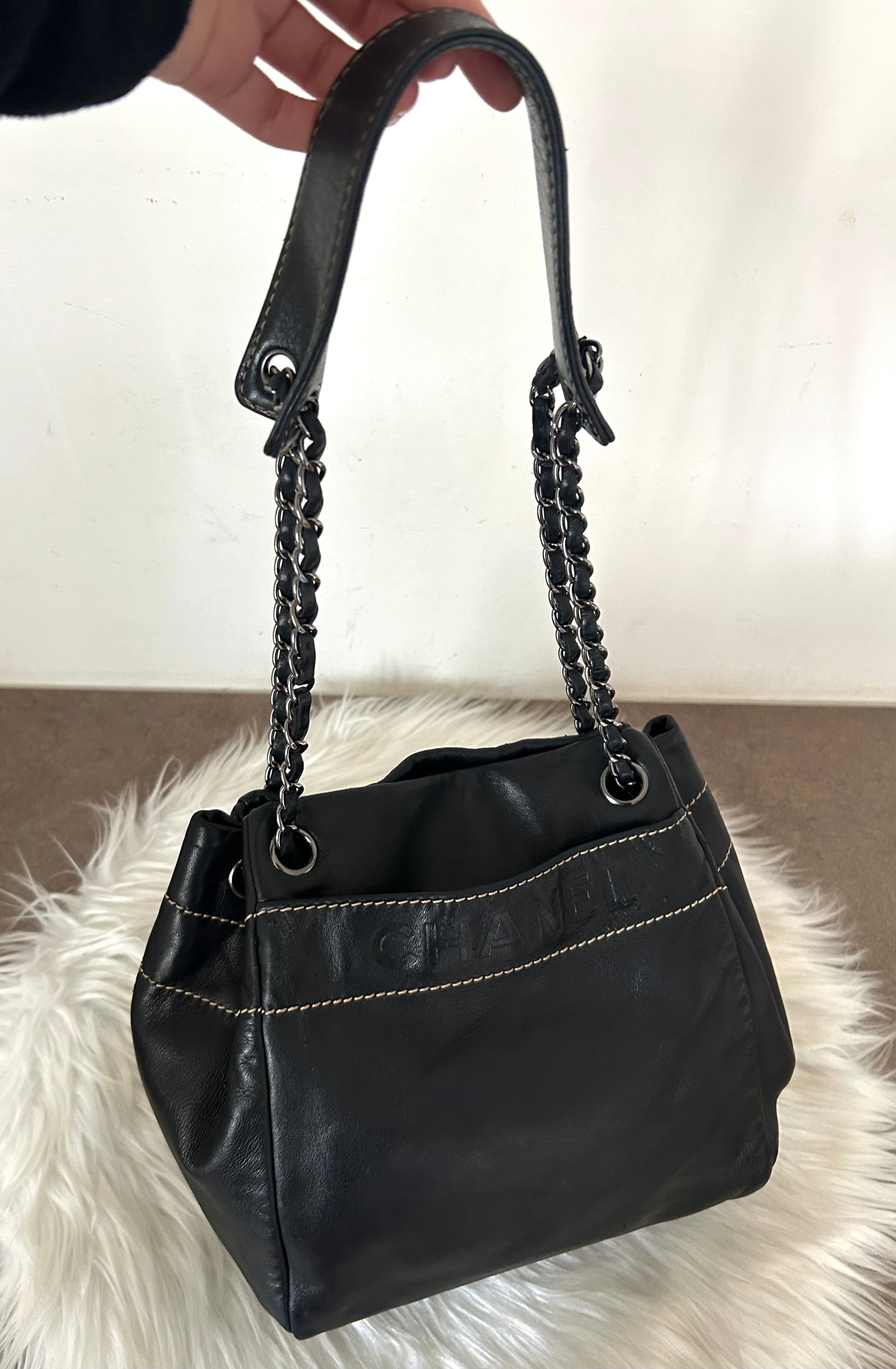 Chanel bucket in calfskin nera rarissima e morbidissima con certificato di autenticità. La borsa si presenta esattamente nelle condizioni mostrate in foto, si prega di guardarle attentamente poiché eventuali difetti o imperfezioni sono sempre mostrati. Il prezzo tiene sempre conto delle condizioni della borsa. Ogni articolo viene sempre igienizzato prima di essere spedito.
