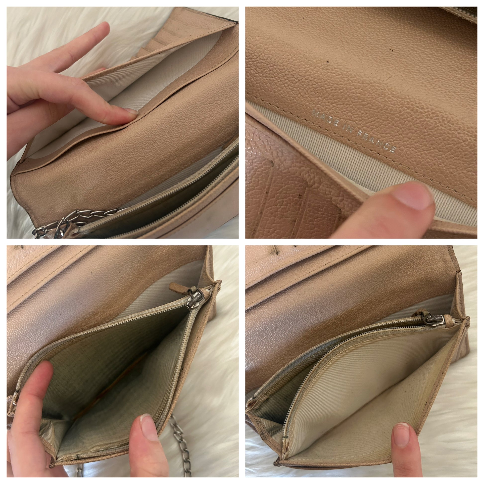 Chanel Wallet on Chain nero in pelle verniciata. Preciso che la catena è unbranded ed è removibile. Segnalo inoltre che i lati e gli angoli del woc soono stati fatti riverniciare neri come l’esterno da un esperto del settore. La borsa si presenta esattamente nelle condizioni mostrate in foto, si prega di guardarle attentamente poiché eventuali difetti o imperfezioni sono sempre mostrati. Il prezzo tiene sempre conto delle condizioni della borsa.