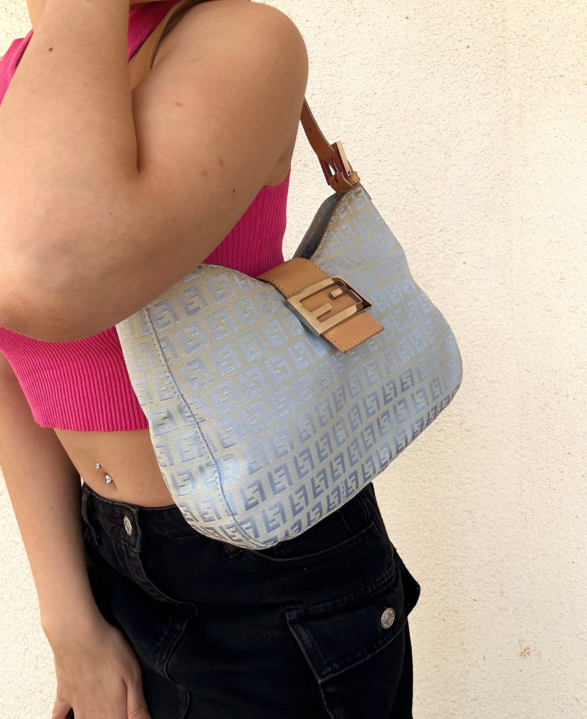Fendi baguette zucchino azzurrina e beige. La borsa si presenta esattamente nelle condizioni mostrate in foto, nelle quali sono mostrati eventuali difetti o imperfezioni dovute all’utilizzo.