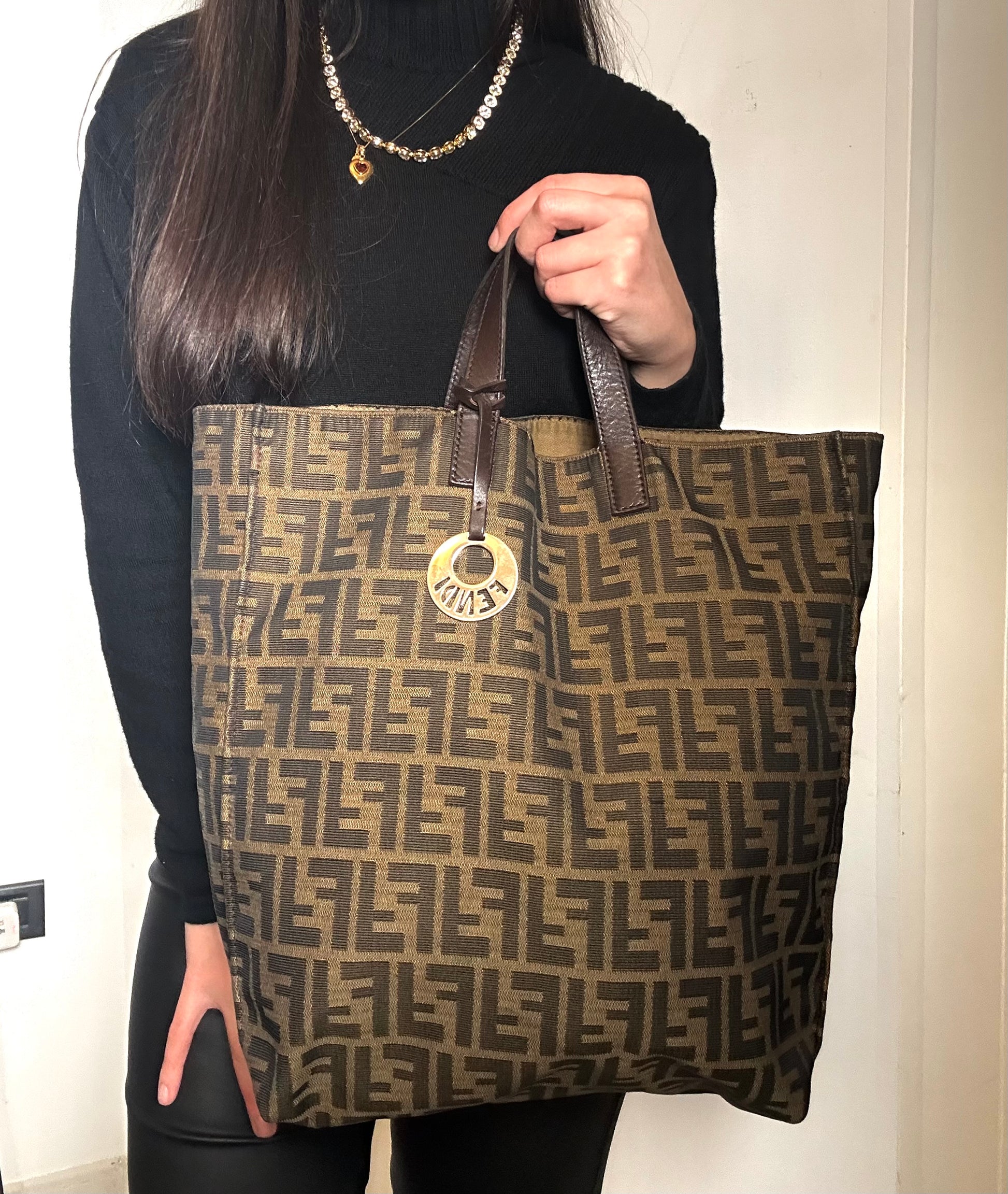 Fendi tote in monogram zucca vintage. La borsa si presenta esattamente nelle condizioni mostrate in foto, si prega di guardarle attentamente poiché eventuali difetti o imperfezioni, se presenti, sono sempre mostrati. Il prezzo tiene sempre conto delle condizioni della borsa. Ogni articolo viene sempre igienizzato prima di essere spedito. Segnalo che gli angoli della borsa sono stati fatti sistemare da un esperto del settore.