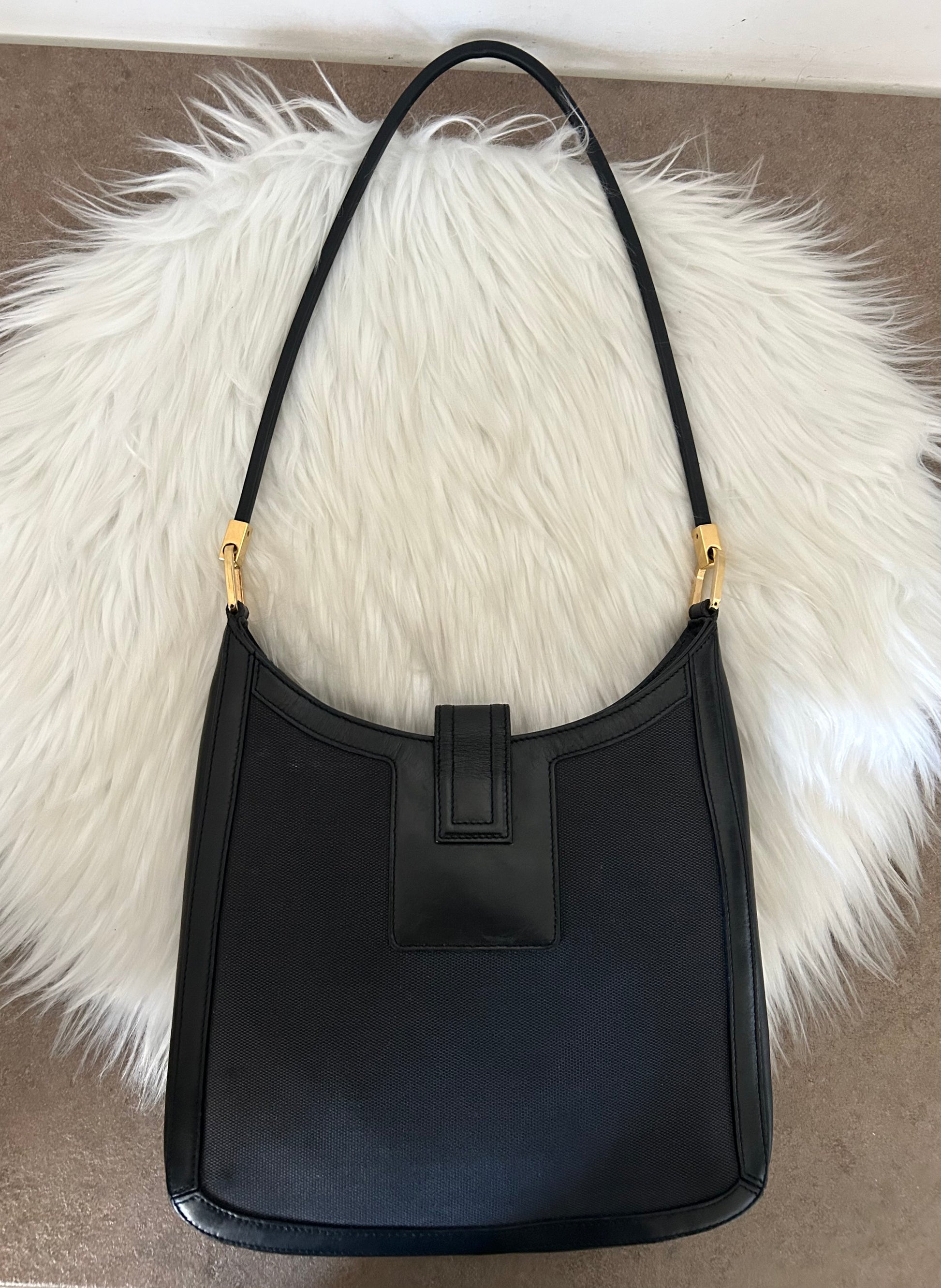 Borsa Gucci Jackie in tela e pelle. La borsa è esattamente come mostrata nelle foto, piccole imperfezioni sono sempre mostrate in foto, nel complesso è in condizioni molto buone pur essendo un articolo vintage!