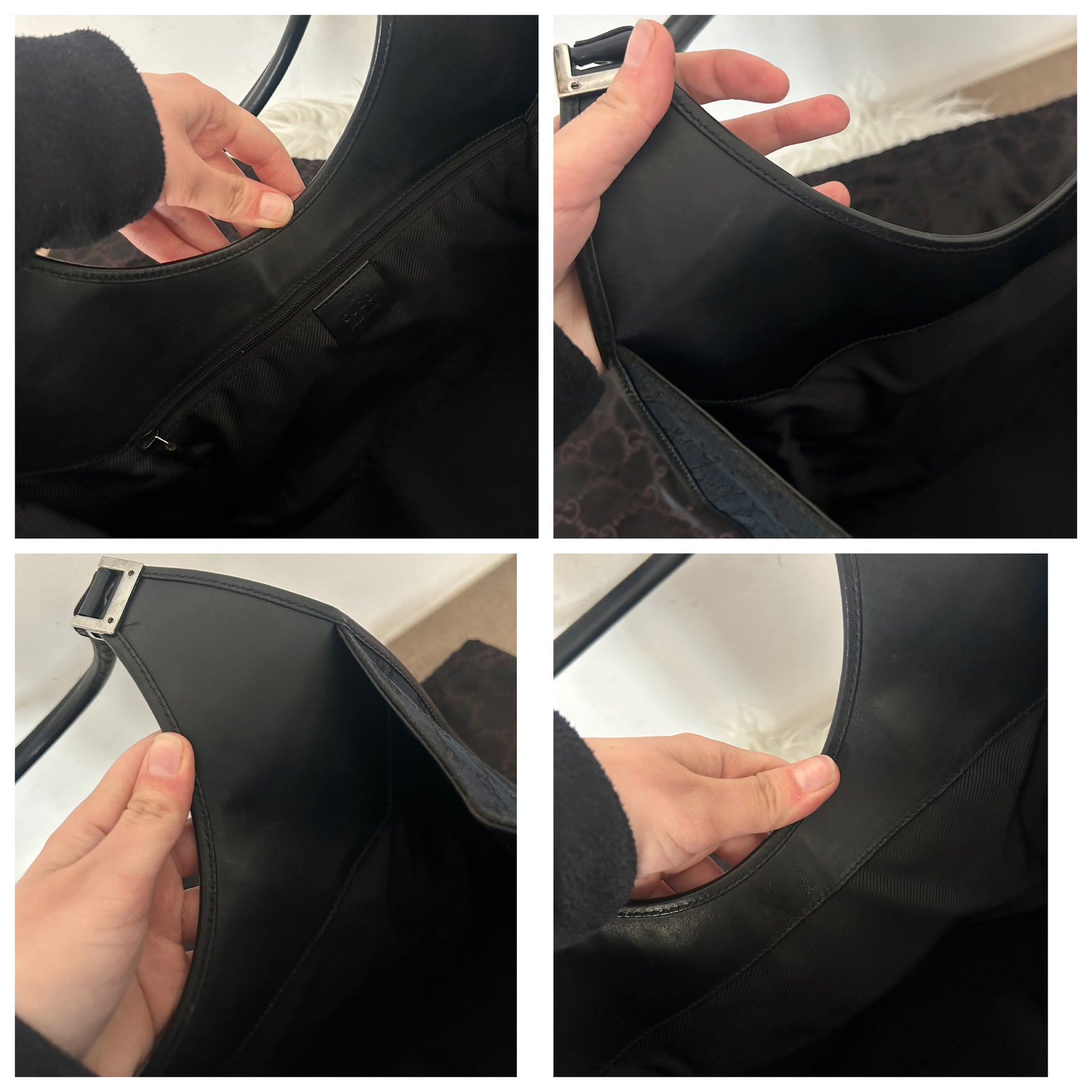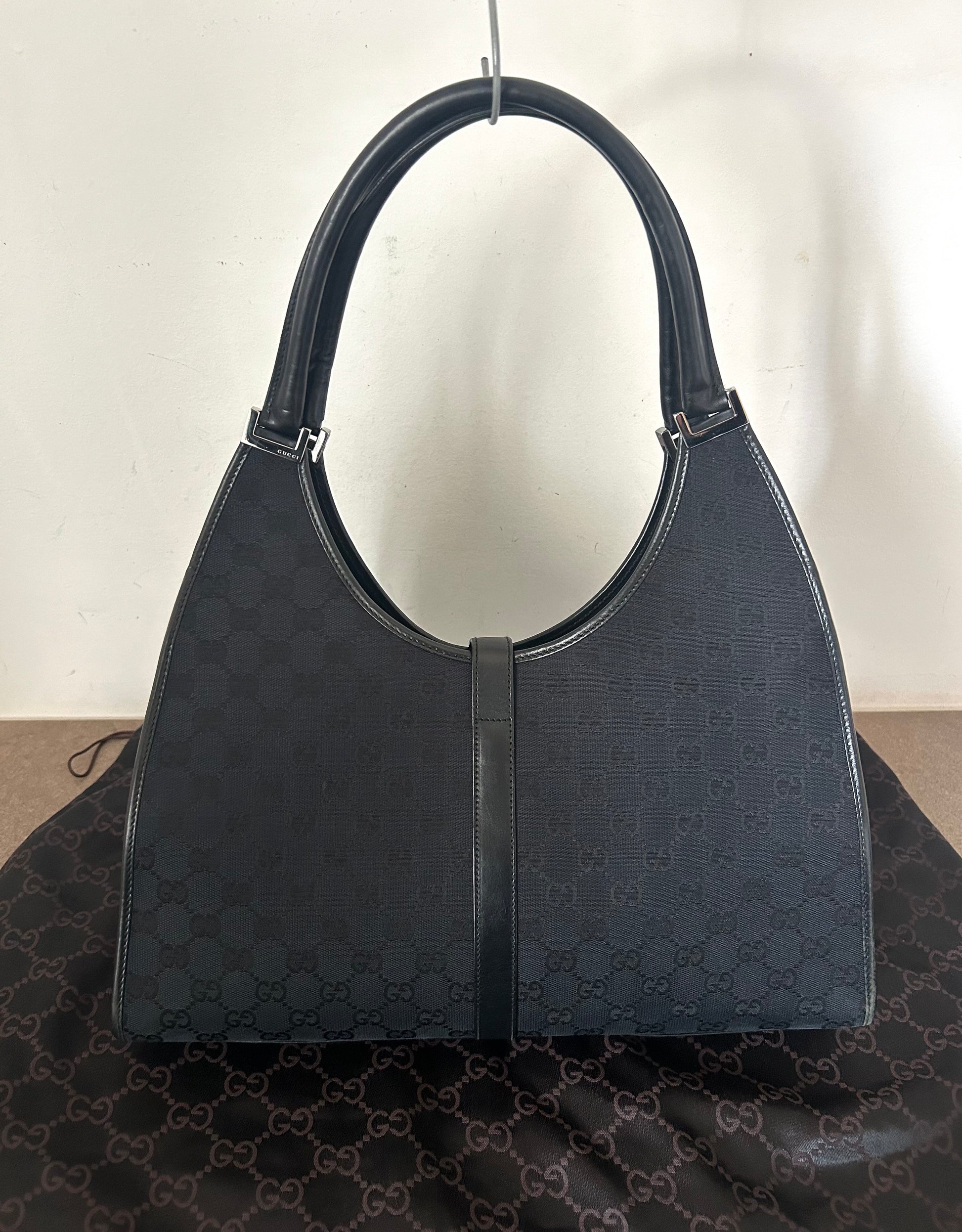 Gucci Jackie a doppio manico nera in monogram con dust bag. Segnalo che uno dei 4 angoli della borsa è stato restaurato da un esperto del settore. La borsa si presenta esattamente nelle condizioni mostrate in foto, si prega di guardarle attentamente poiché eventuali difetti o imperfezioni, se presenti, sono sempre mostrati. Il prezzo tiene sempre conto delle condizioni della borsa. Ogni articolo viene sempre igienizzato prima di essere spedito.