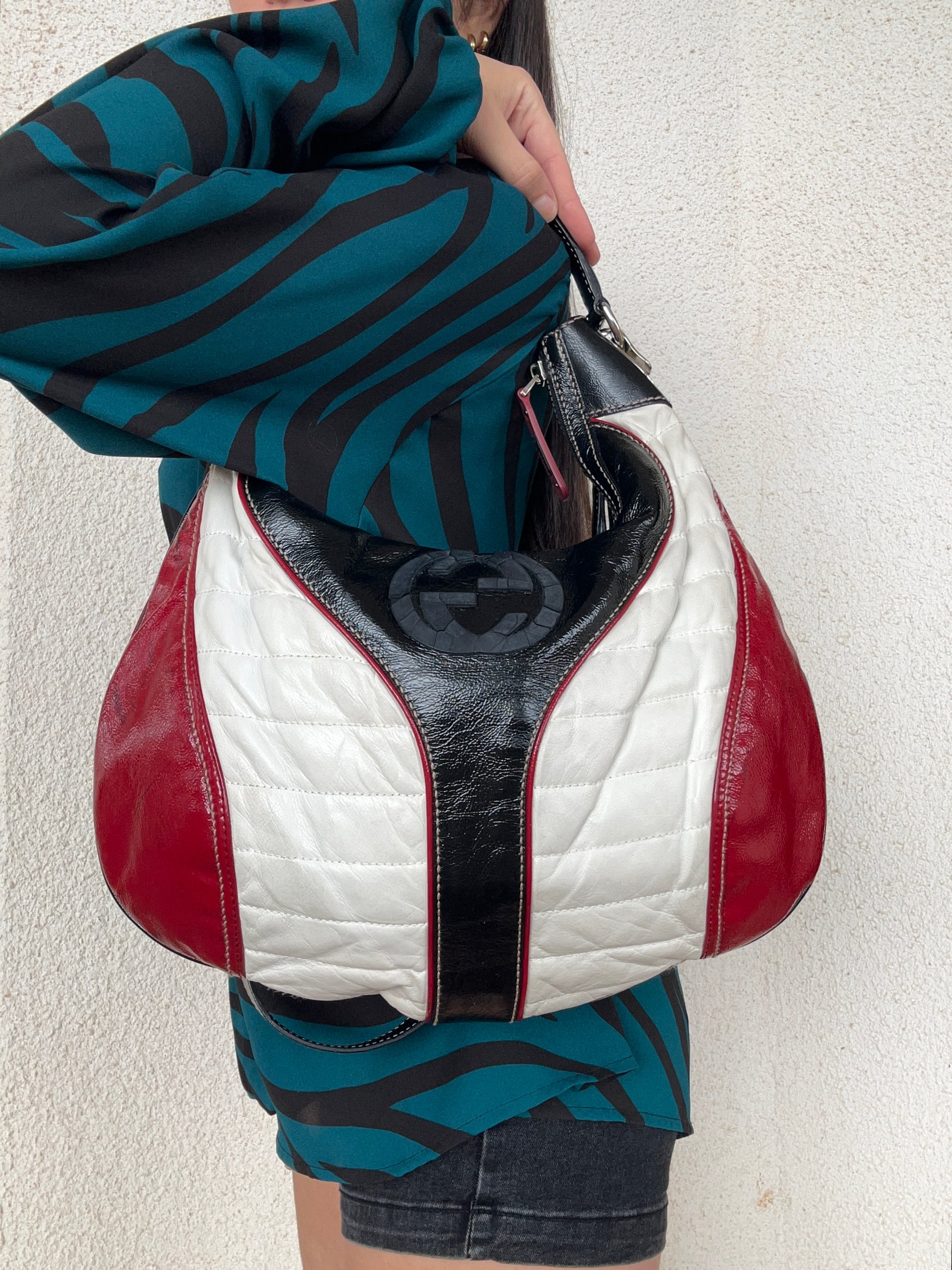 Gucci Snow Glam Hobo in pelle verniciata morbidissima. La borsa si presenta esattamente nelle condizioni mostrate in foto, si prega di guardarle attentamente poiché eventuali difetti o imperfezioni sono sempre mostrati. Il prezzo tiene sempre conto delle condizioni della borsa.