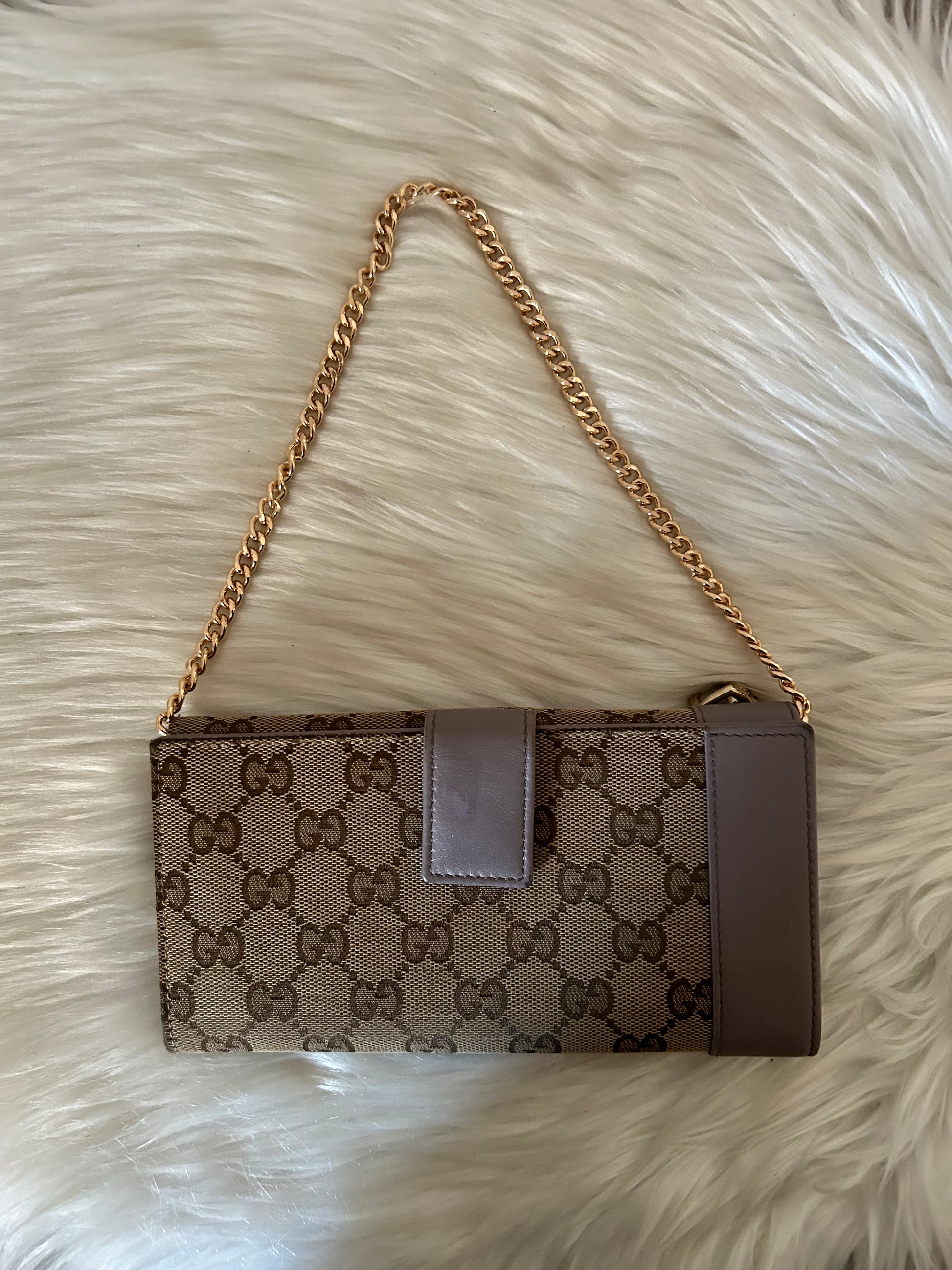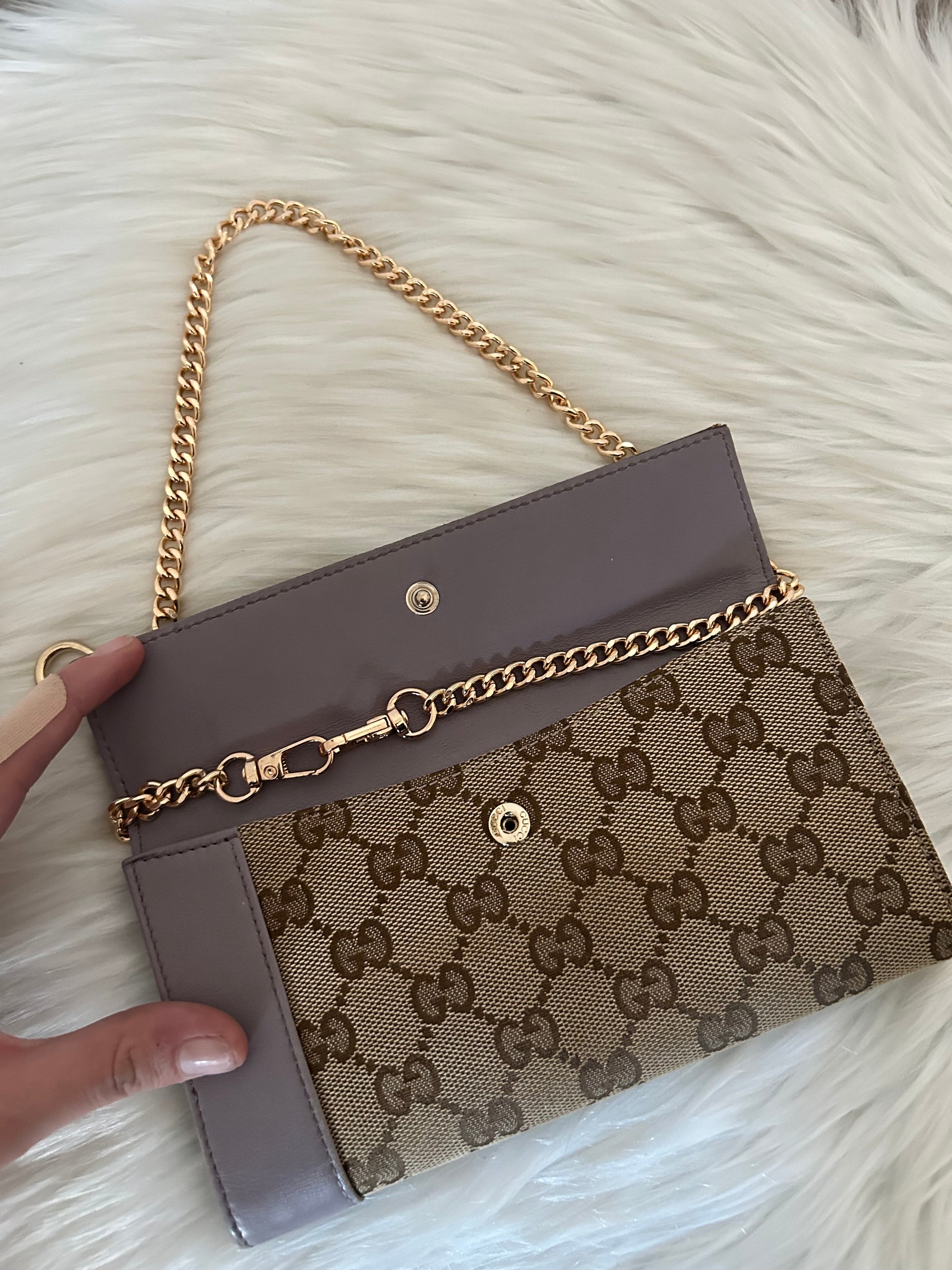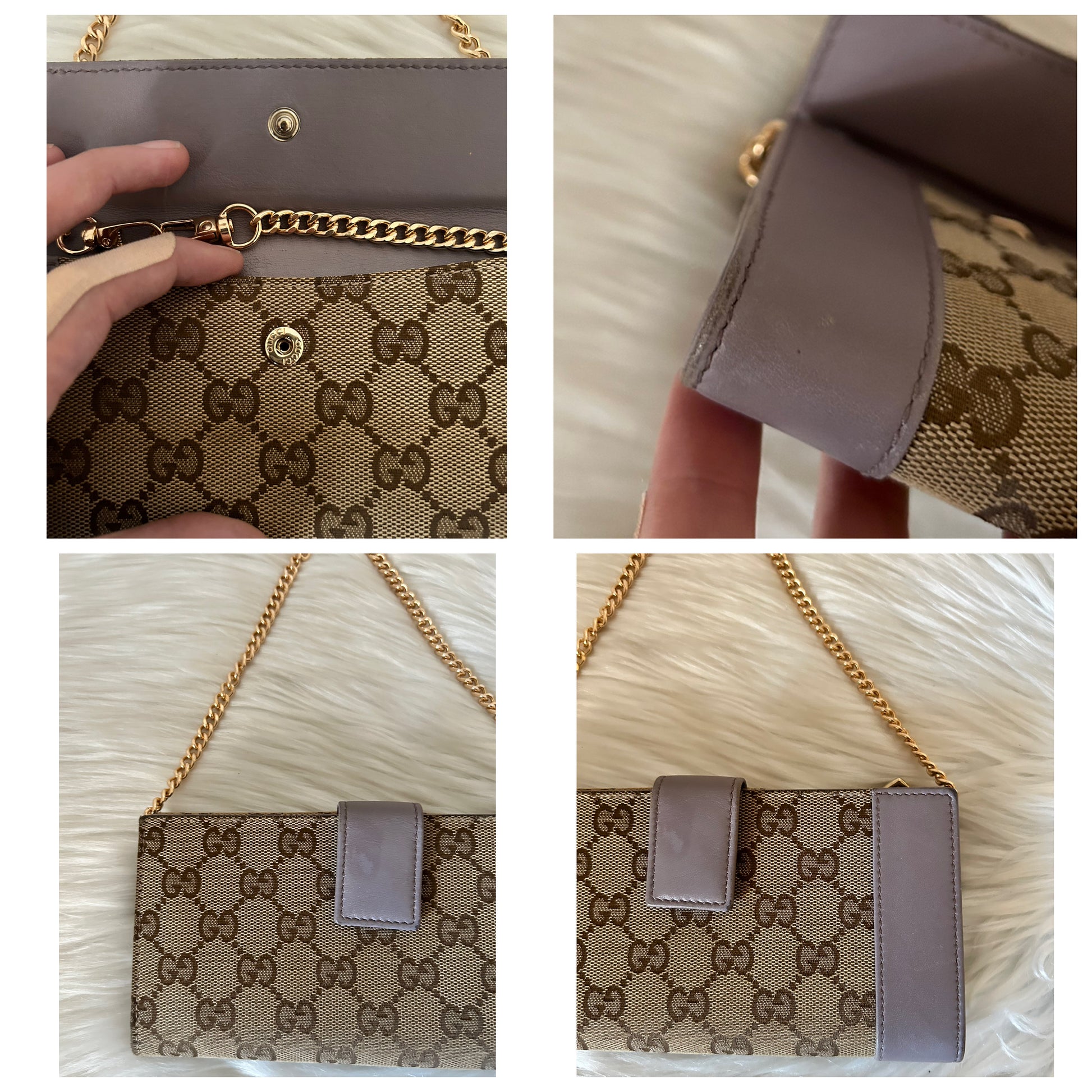 Gucci Wallet on chain con catena aggiunta in un secondo momento. La catena è solo appoggiata, non sono stati effettuati fori sul portafoglio. La borsa si presenta esattamente nelle condizioni mostrate in foto, si prega di guardarle attentamente poiché eventuali difetti o imperfezioni sono sempre mostrati. Il prezzo tiene sempre conto delle condizioni della borsa.