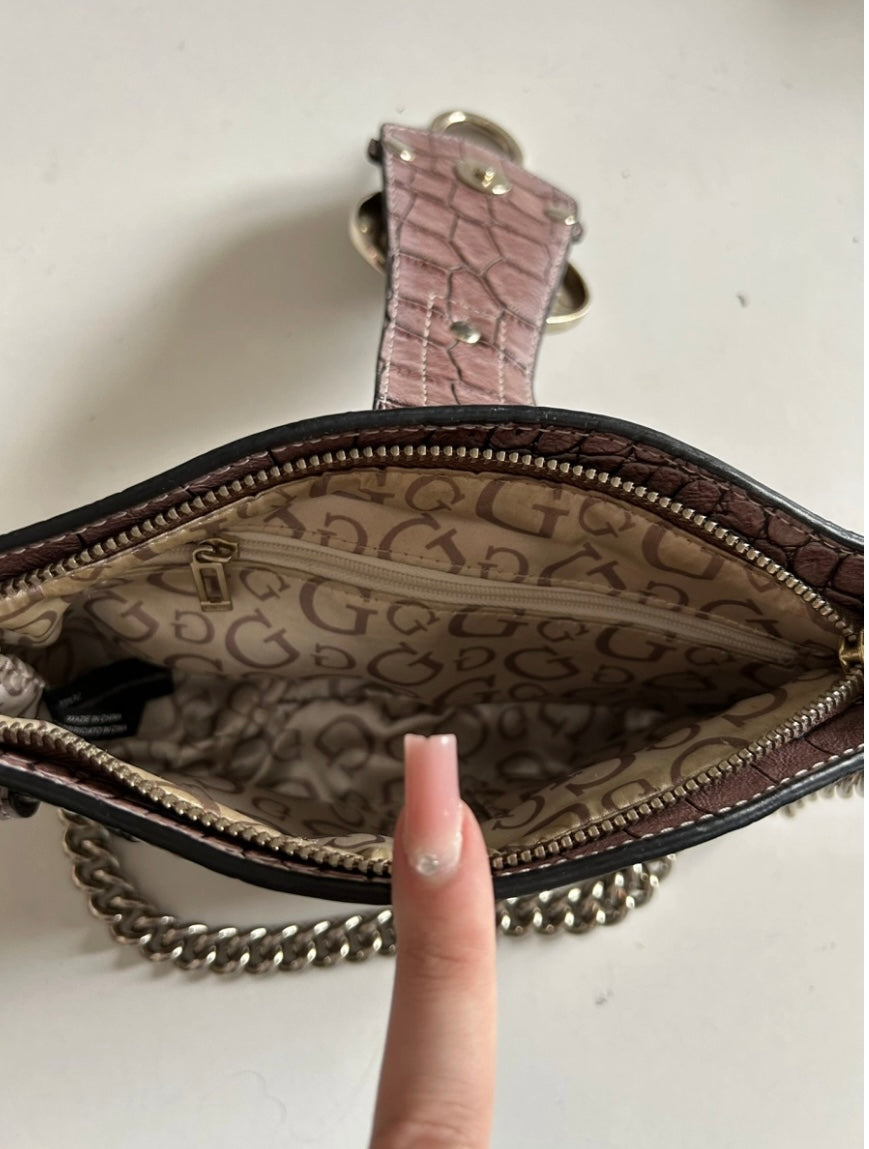 Borsa in similpelle di coccodrillo viola a spalla e tracolla. La borsa si presenta esattamente nelle condizioni mostrate in foto, si prega di guardarle attentamente poiché eventuali difetti o imperfezioni sono sempre mostrati. Il prezzo tiene sempre conto delle condizioni della borsa.