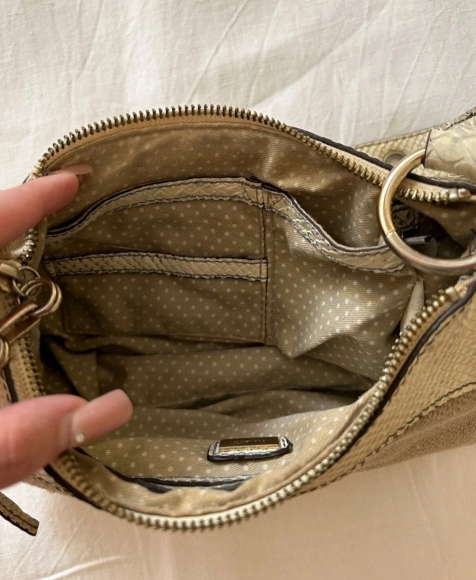Guess vintage in tela con hardware in Swarovski vintage. La borsa si presenta esattamente nelle condizioni mostrate in foto, si prega di guardarle attentamente poiché eventuali difetti o imperfezioni sono sempre mostrati. Il prezzo tiene sempre conto delle condizioni della borsa.