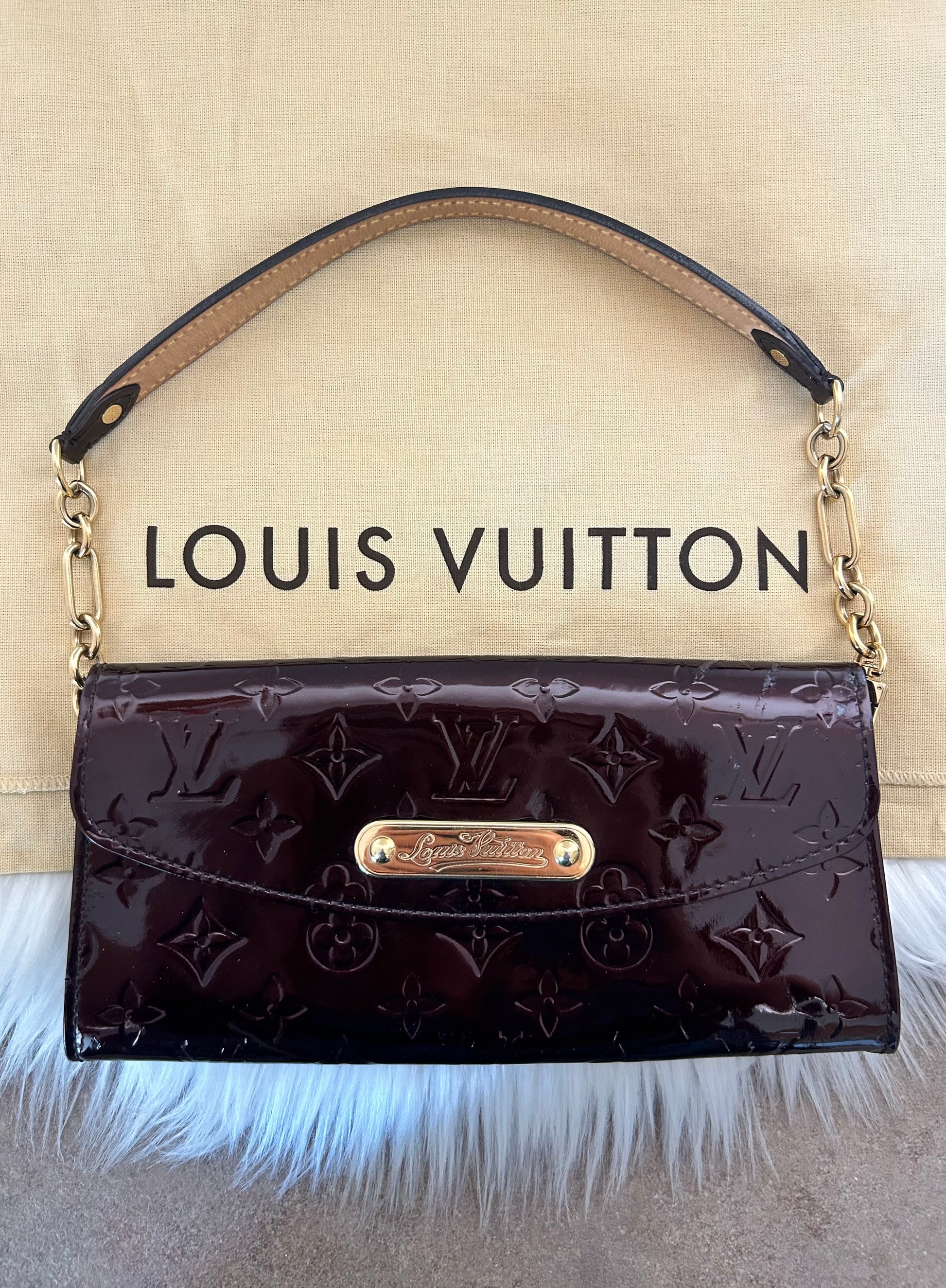Louis Vuitton Sunset Boulevard bordeaux in vernice. La borsa si presenta esattamente nelle condizioni mostrate in foto, si prega di guardarle attentamente poiché eventuali difetti o imperfezioni sono sempre mostrati. Il prezzo tiene sempre conto delle condizioni della borsa. La particolarità della borsa è che cambia colore alla luce del sole.