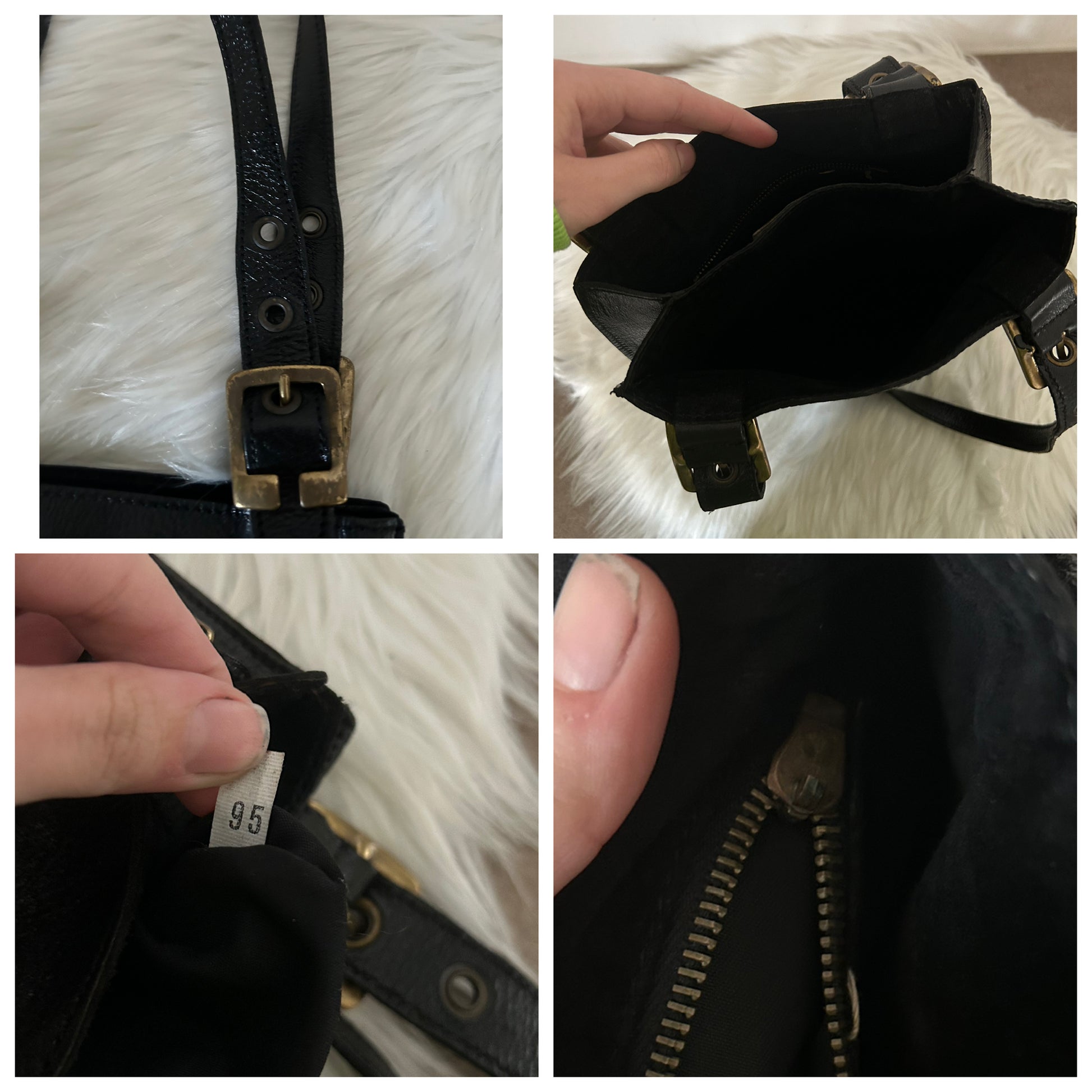 Miu Miu tote bag in pelle verniciata nera con interni in camoscio. Eventuali difetti o imperfezioni sono sempre segnalati nelle foto, tipo in questo caso qualche segnetto sulla metalleria e la zip all’interno non funziona, ma nel complesso la borsa è in condizioni molto buone come si può vedere dalle foto considerando anche che è un pezzo vintage!