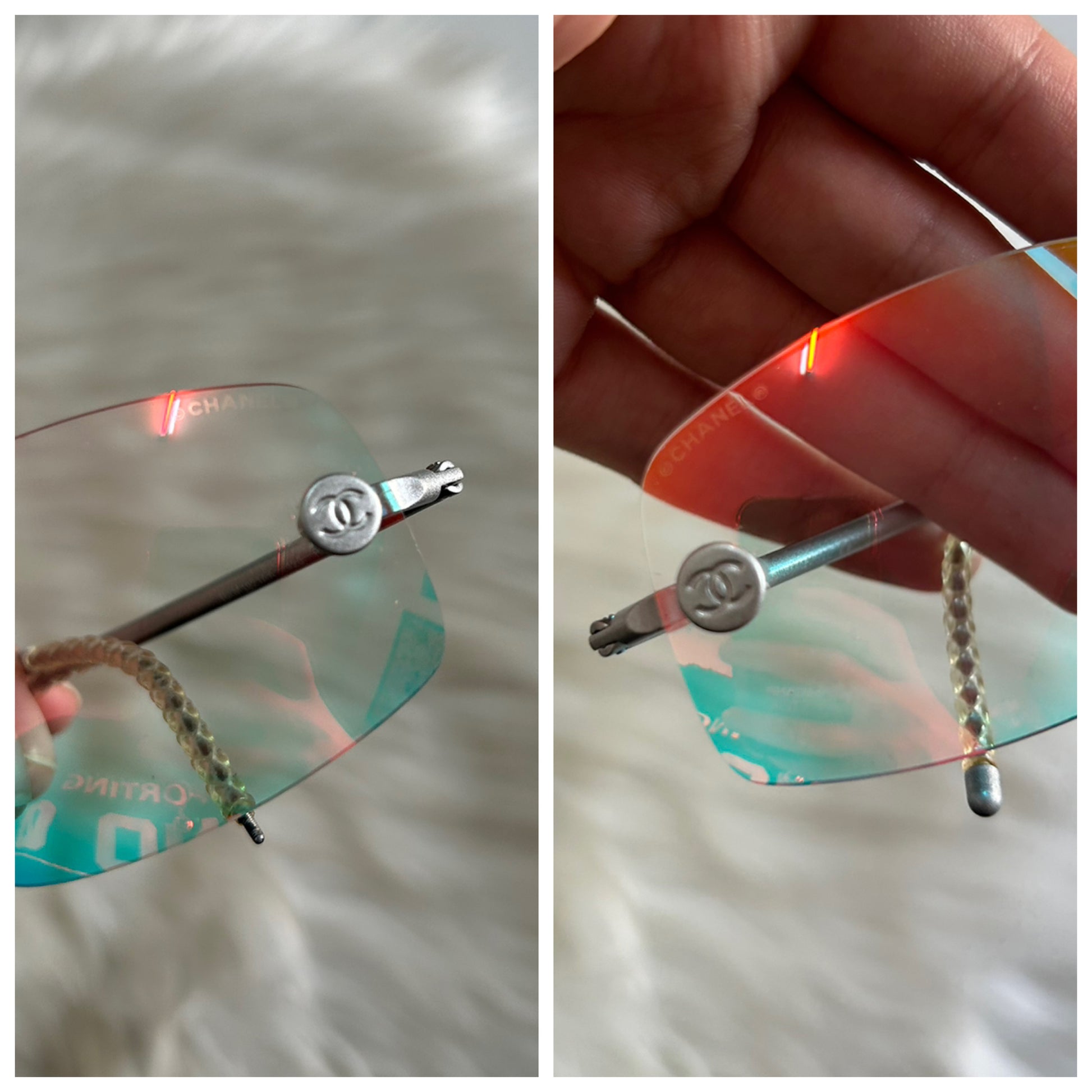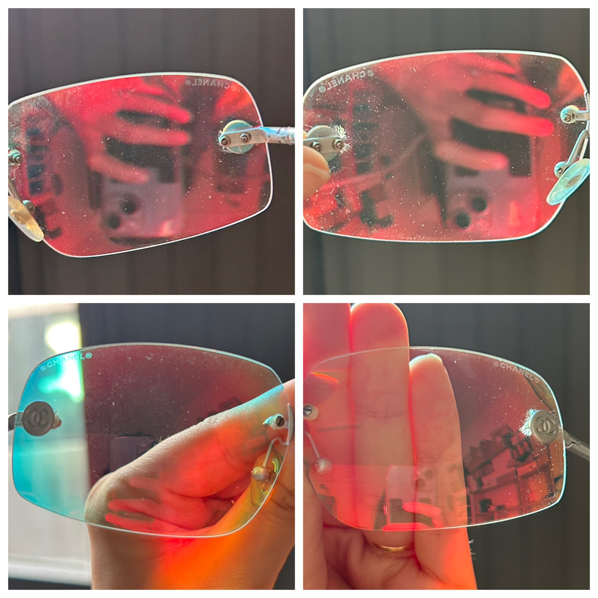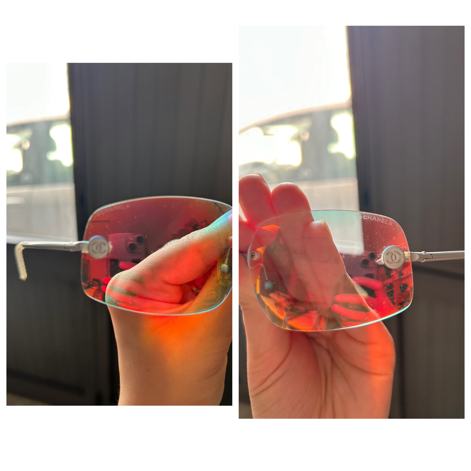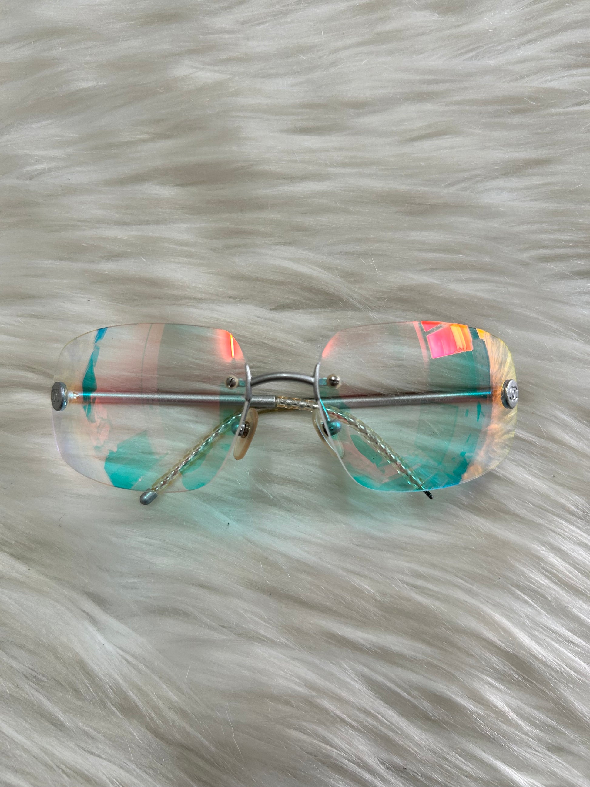 Occhiali da sole Chanel vintage oleografici. Gli occhiali si presentano esattamente nelle condizioni mostrate in foto, nelle quali sono mostrati eventuali difetti o imperfezioni dovuti all’utilizzo.