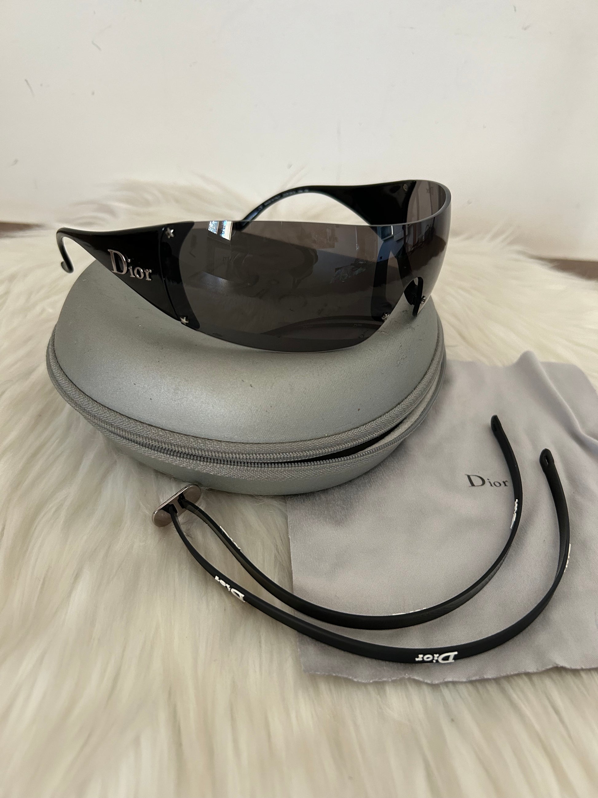 Occhiali Dior Ski 5 con aste nere e custodia vintage y2k