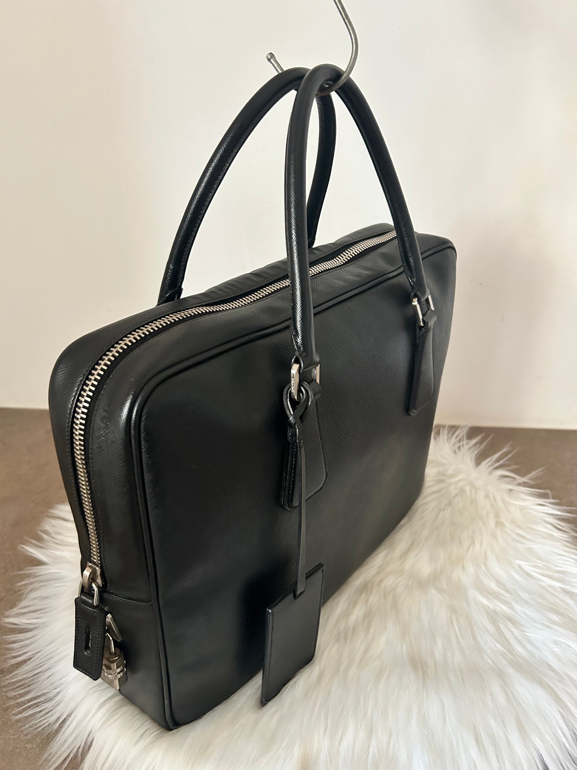 Borsa Prada modello work in pelle nera stile tipo Miu Miu. La borsa si presenta esattamente nelle condizioni mostrate in foto, si prega di guardarle attentamente poiché eventuali difetti o imperfezioni sono sempre mostrati. Il prezzo tiene sempre conto delle condizioni della borsa. Segnalo solo qualche piccolo graffietto di poco conto che mostro sempre in foto.