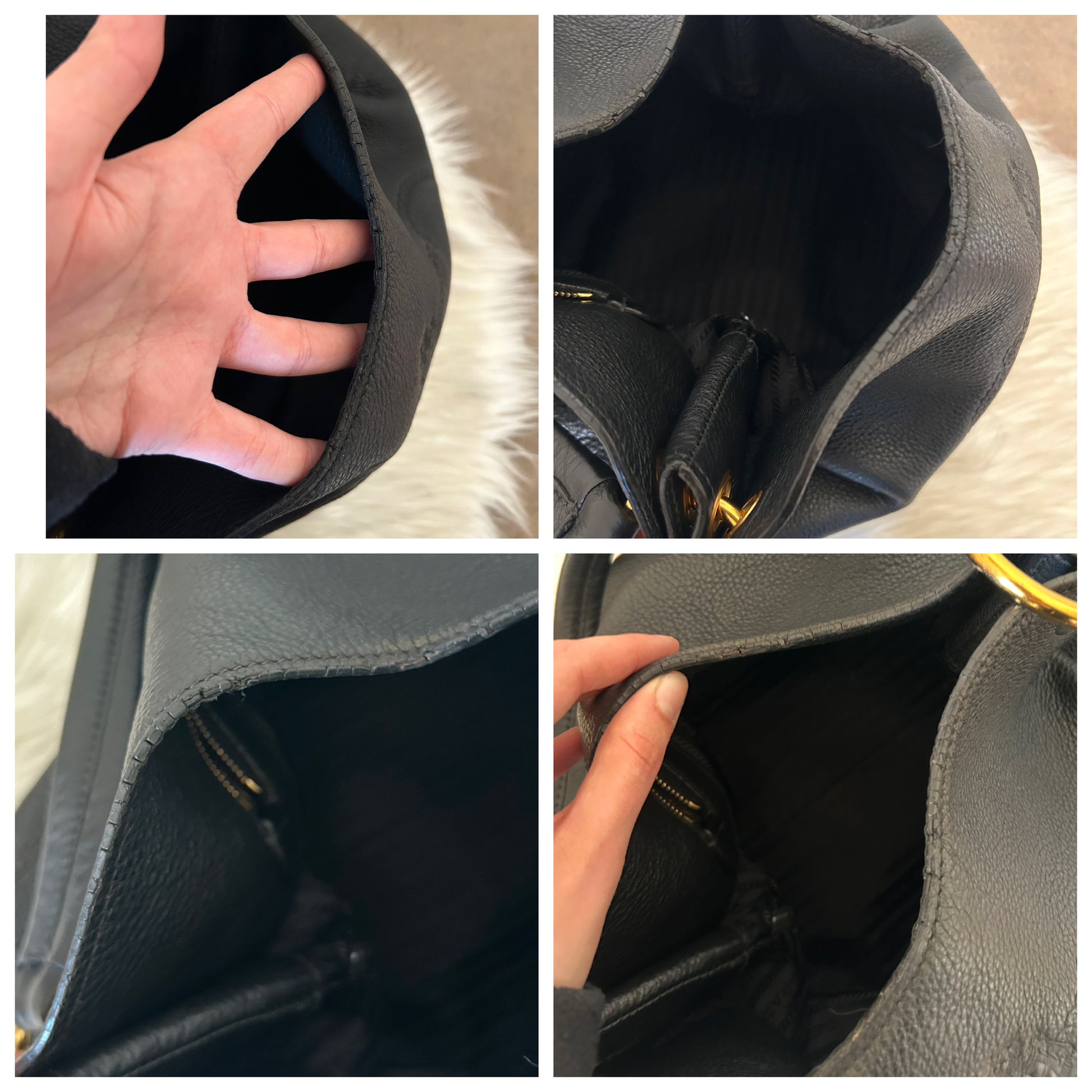 Prada tote in pelle nera di vitello modello Phoenix vintage. La borsa si presenta esattamente nelle condizioni mostrate in foto, si prega di guardarle attentamente poiché eventuali difetti o imperfezioni, se presenti, sono sempre mostrati. Il prezzo tiene sempre conto delle condizioni della borsa. Ogni articolo viene sempre igienizzato prima di essere spedito.