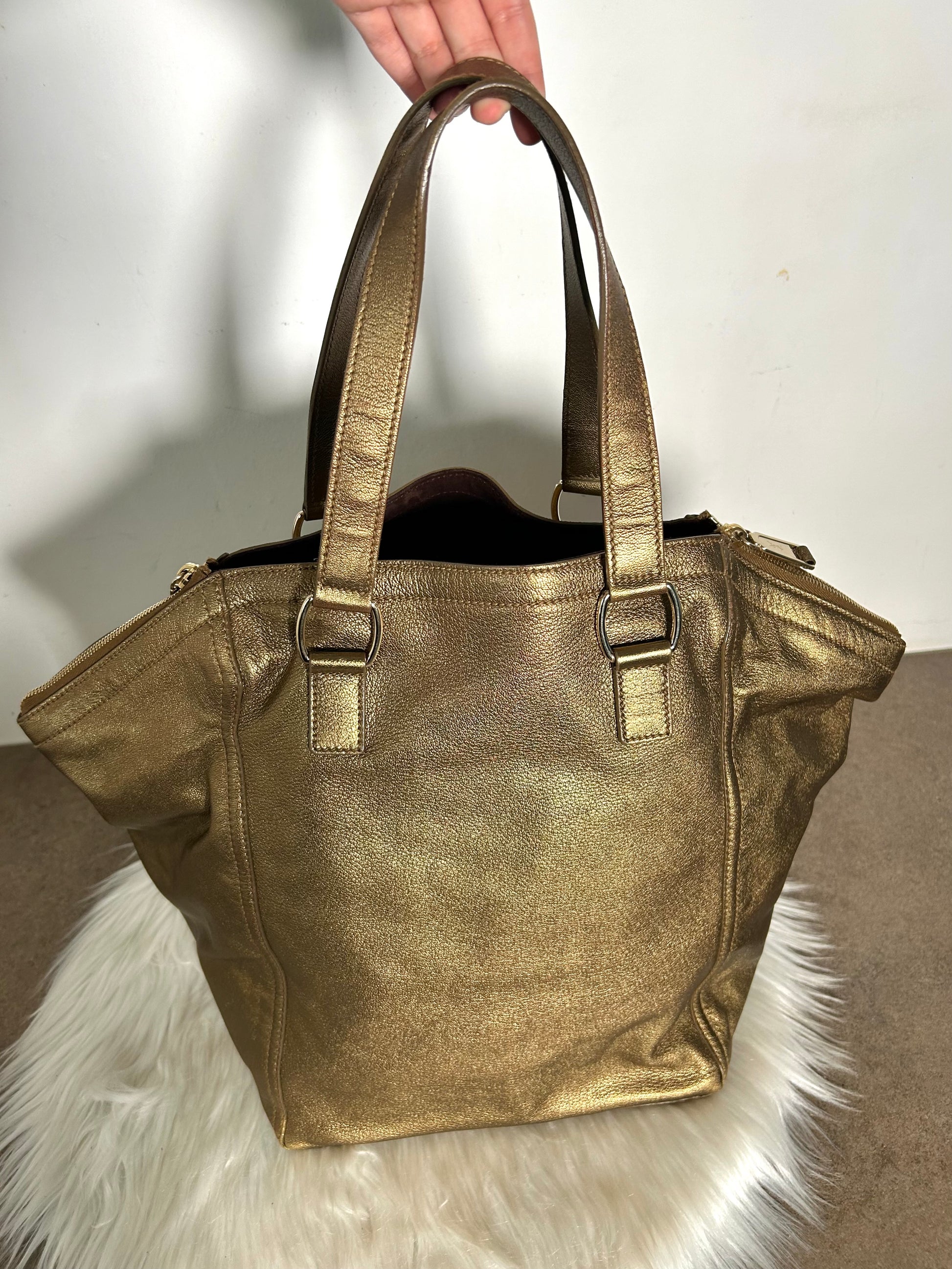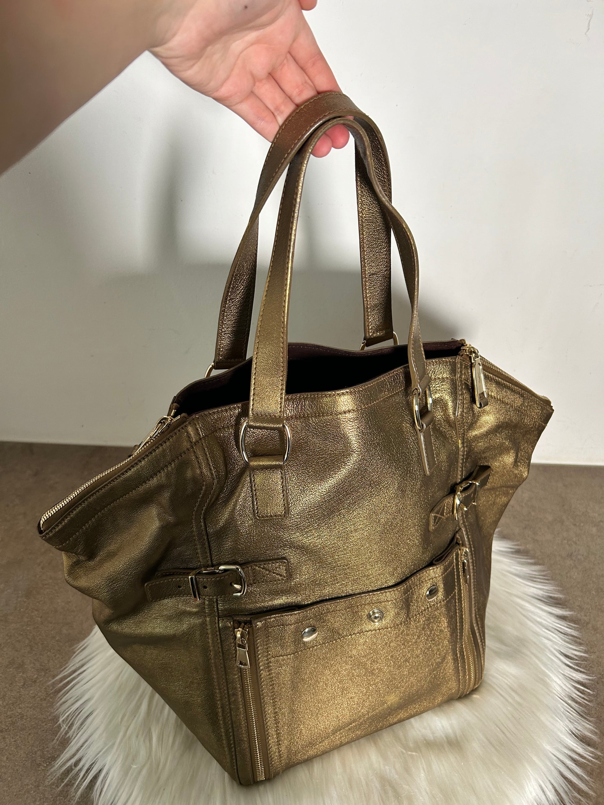 Yves Saint Laurent Downtown in pelle e camoscio dorata